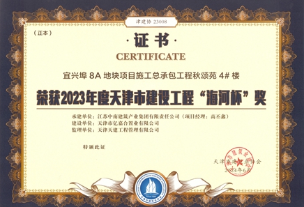 2023年度天津市建設工程金獎海河杯(宜興埠8A地塊項目4-5#、8-10#)